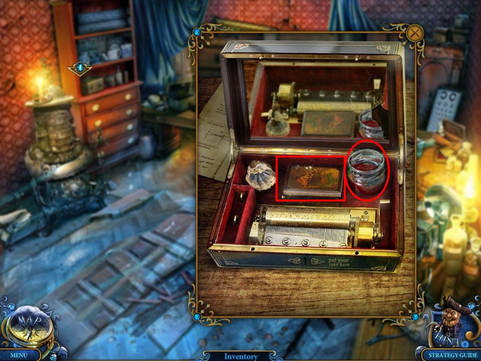 - Use the MAGNIFYING GLASS on the circular stand to light a fire.