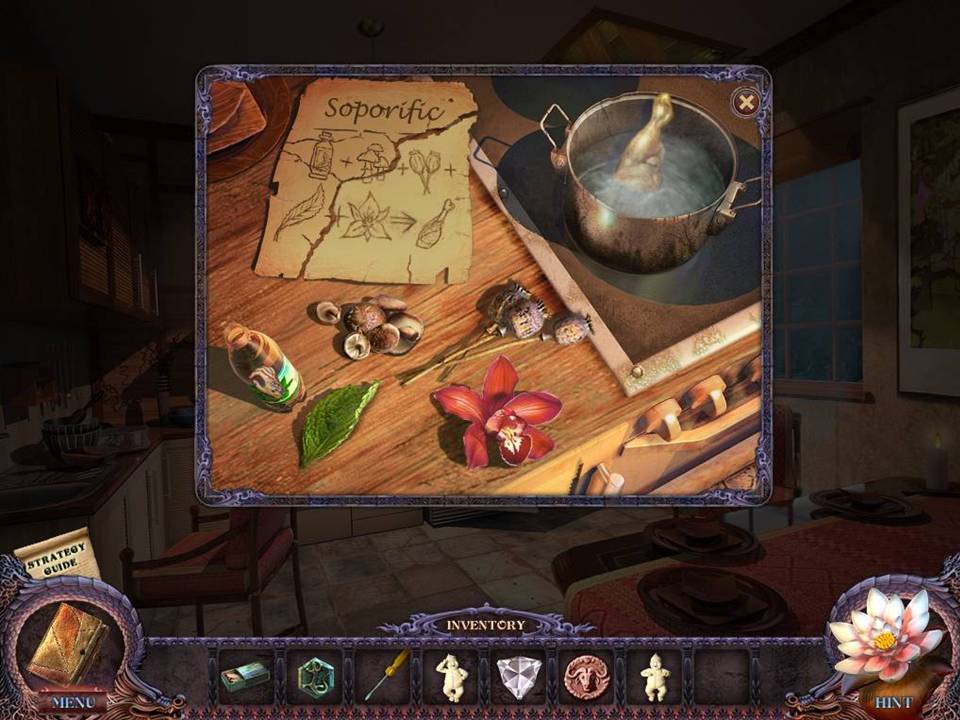 - Follow the recipe by placing the following items in the boiling pot: mint juice, mushrooms, rose hips, mint leaf, and flower. When finished, take the SOPORIFIC MEAT from the pot.