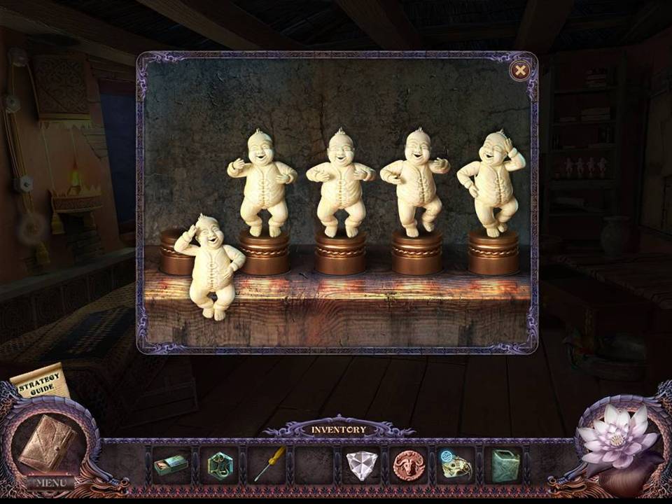 - Zoom into the clock frame on the back shelf. Take the STATUETTE.