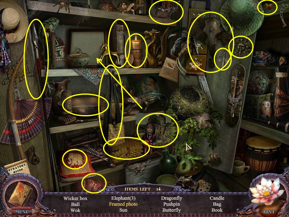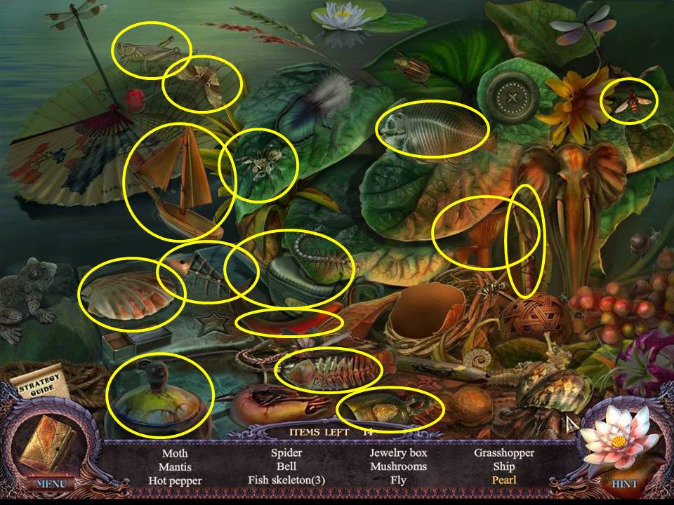- Return to the pool and play the hidden object area over the bushes on the right.