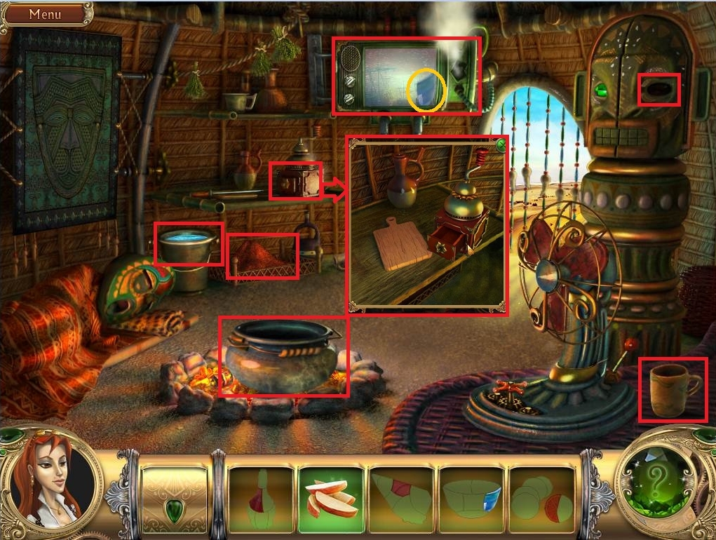 - Place the kettle on top of the fire pit and take the hidden piece.