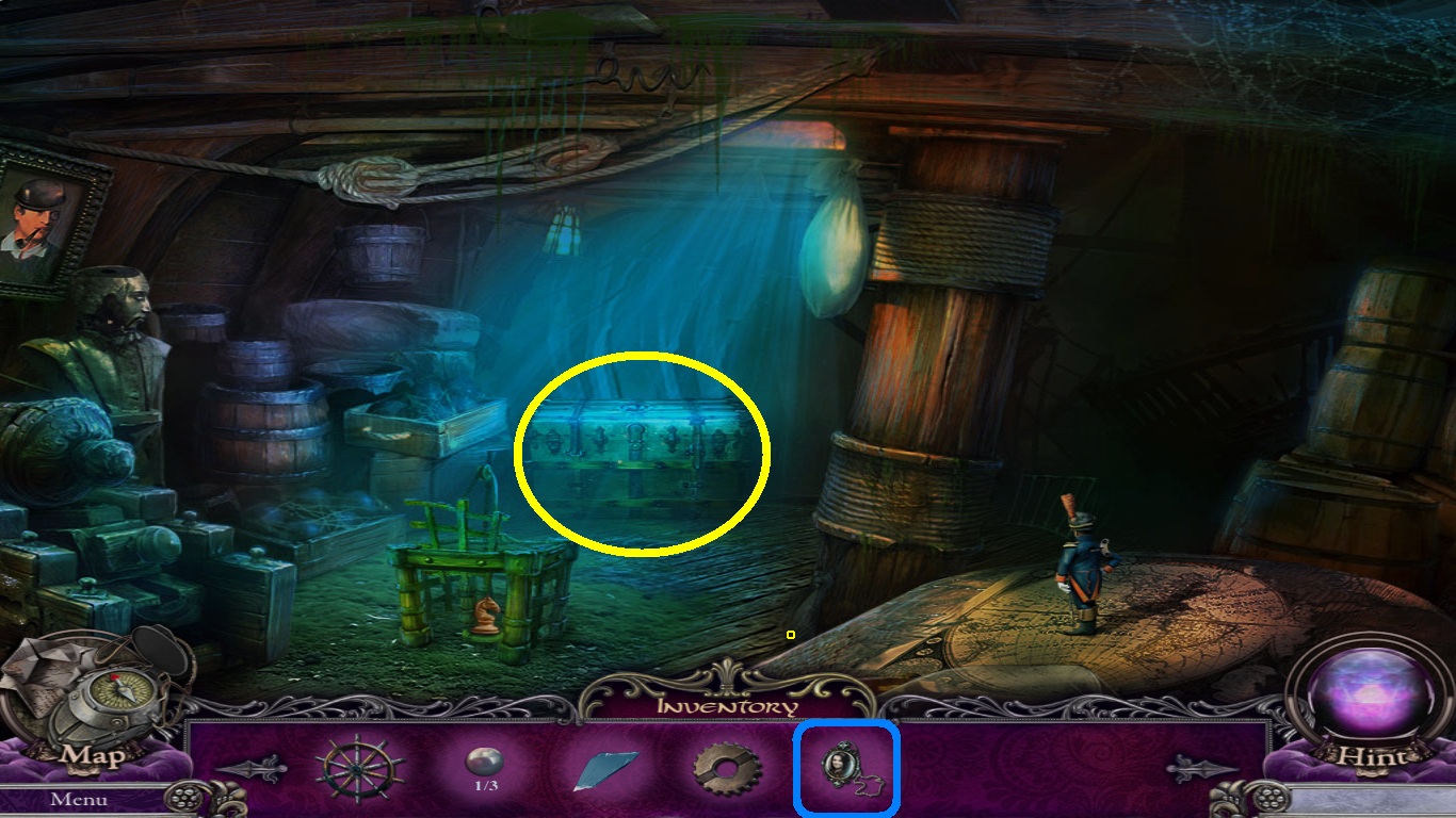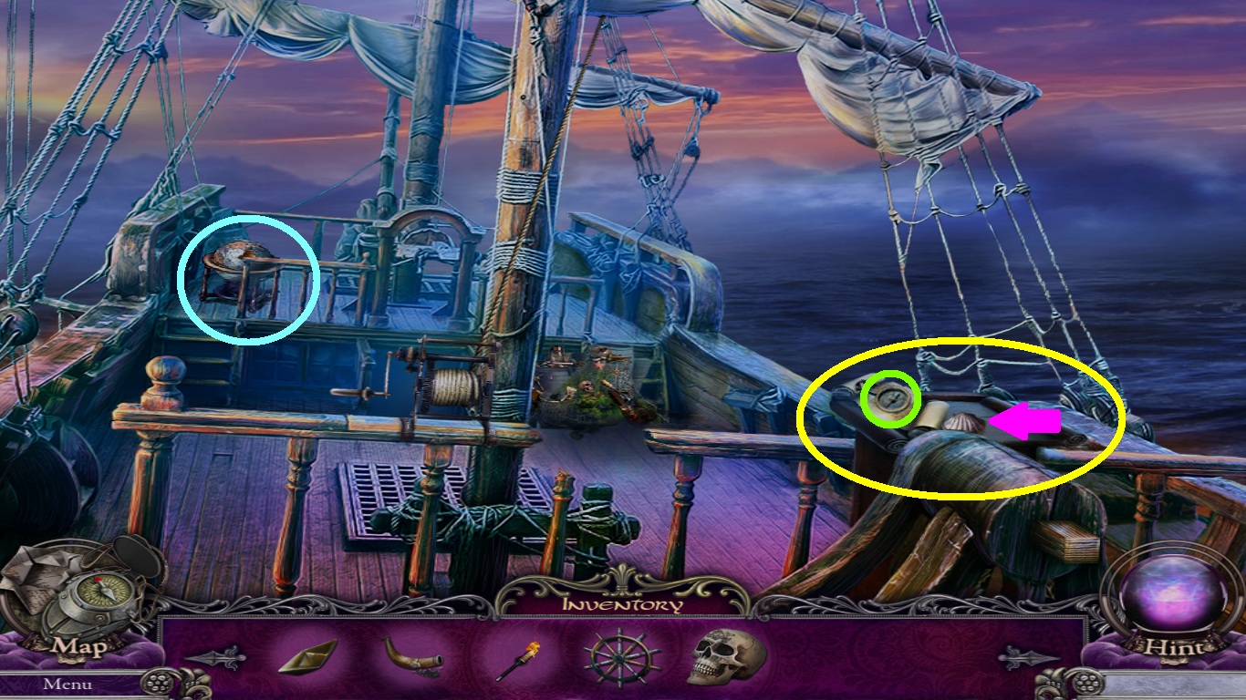 - Select the compass from the inventory and place it into the missing space for a mini game.