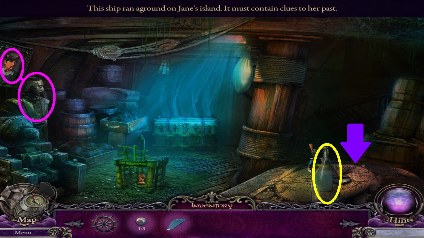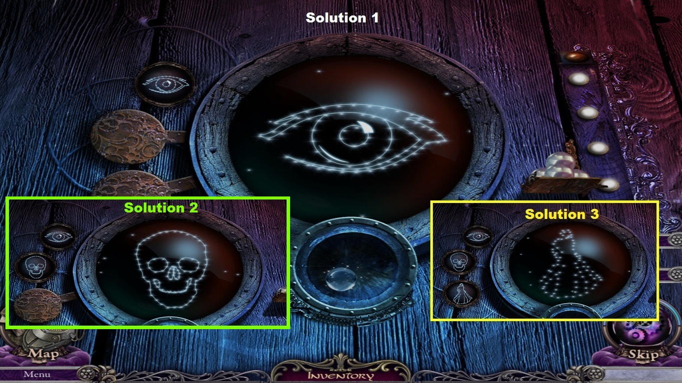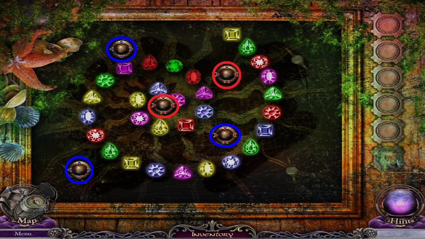 - Place the 3 pearls (white square) from the inventory into the slots to open a mini-game.