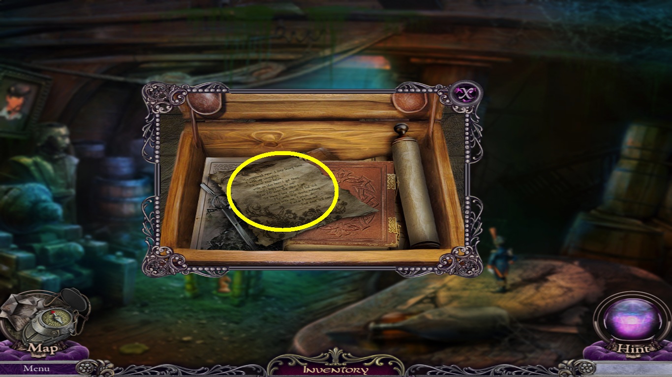 - Zoom into the music box (yellow circle).