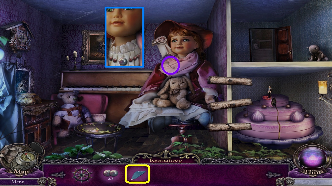 - Enter and go toward the dollhouse.