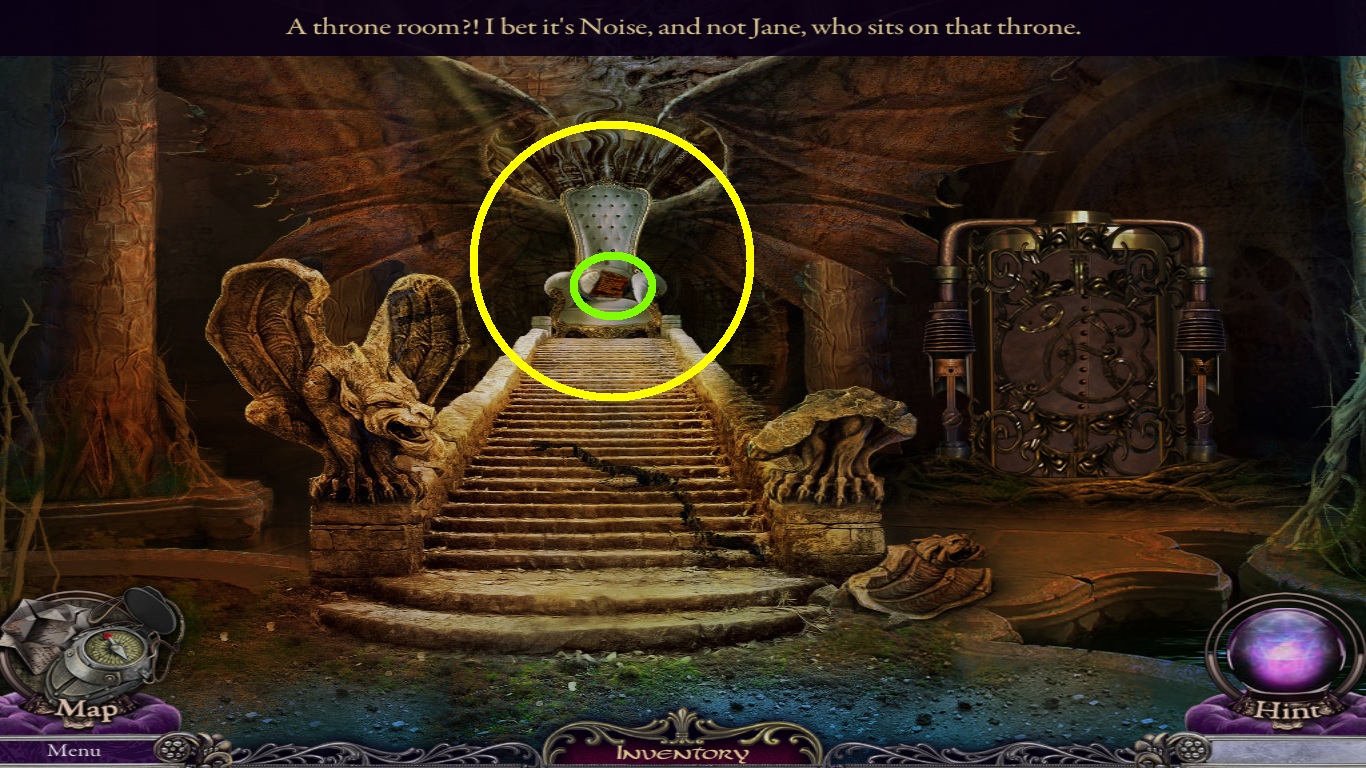 - Zoom into the throne (yellow circle).