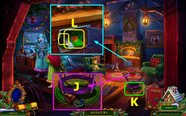 - Take BROKEN AMULET and POINSETTIA; use DUSTER; take HOLLY BERRIES (H).