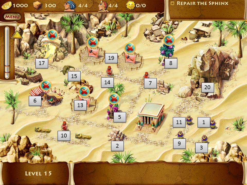 - Hire to 13 workers, sending workers to the sphinx but keeping 2 behind