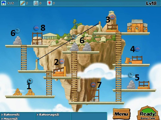 Goals: 5 balloons, 2 houses, 2 balloonage