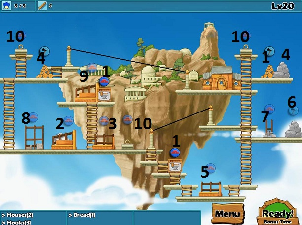 Goals: 2 houses, 3 hooks, 1 bread