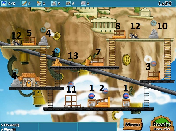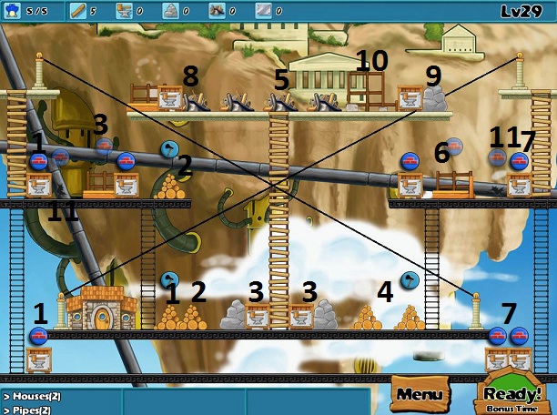 Goals: 2 houses, 2 pipes