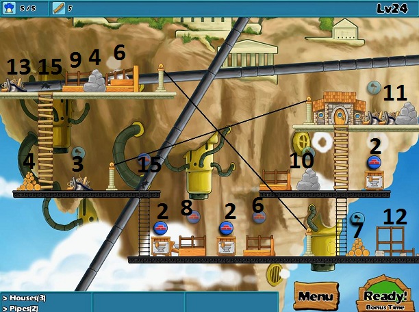 Goals: 3 houses, 2 pipes