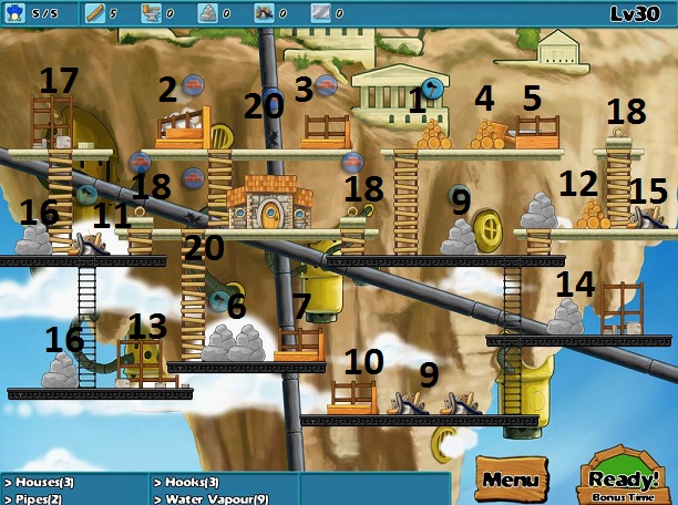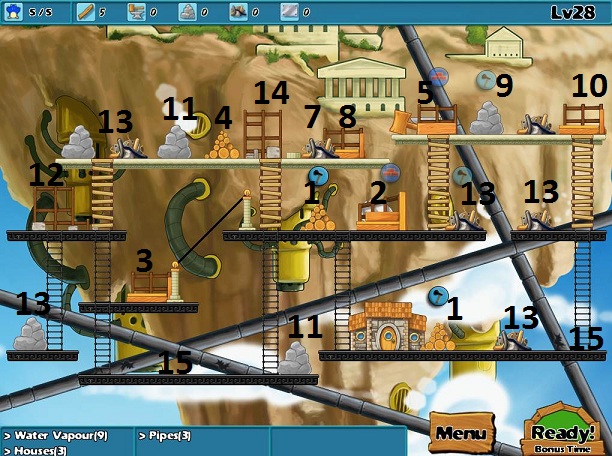 Goals: 9 water vapour, 3 house, 3 pipes