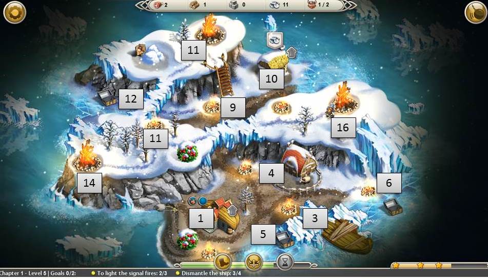 - Light large fire at top of ladder and campfire across ice bridge
