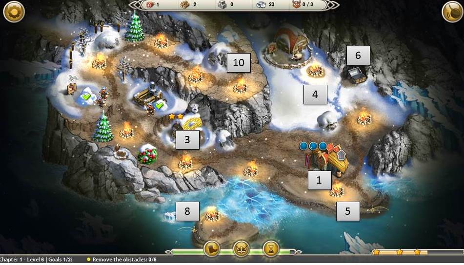 - Build 3rd house and upgrade twice (don't bother keeping road clear for silver)