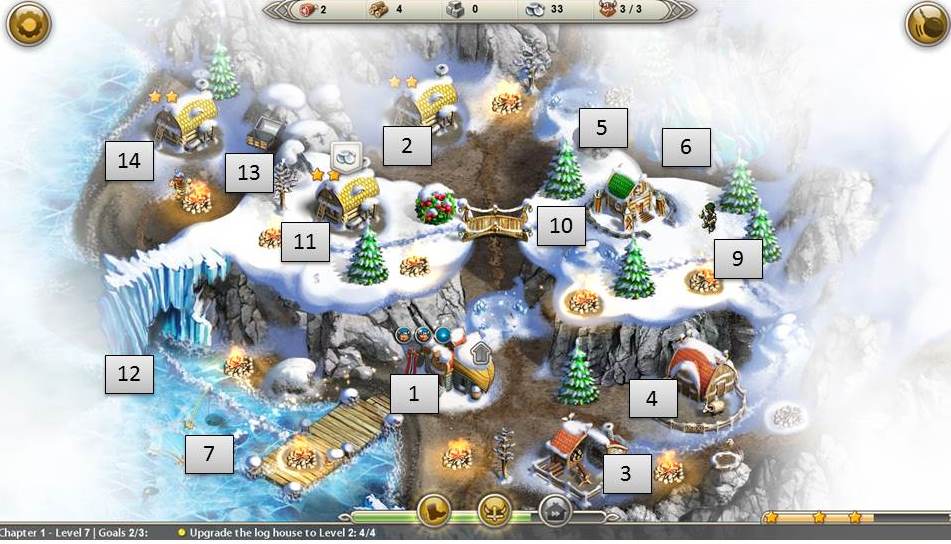 - Build log house and upgrade twice