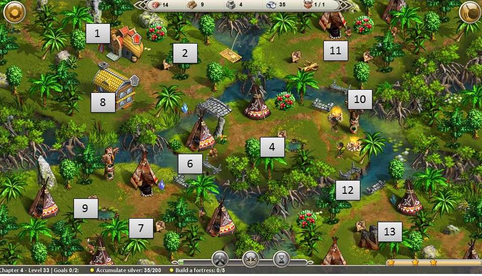 - Collect lots of food, silver, and wood (45 of each)