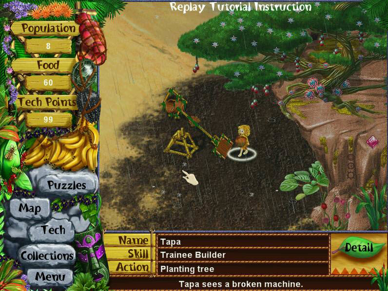 Note: I played using the tutorial but I did NOT let my villagers have a child (per tutorial instructions) until I had established my village a little more than the tutorial advised. This left the "Replay Tutorial" at the top of the screen for a while but I feel it was worth that inconvenience. Once I had my villagers make their first child the tutorial ended.
