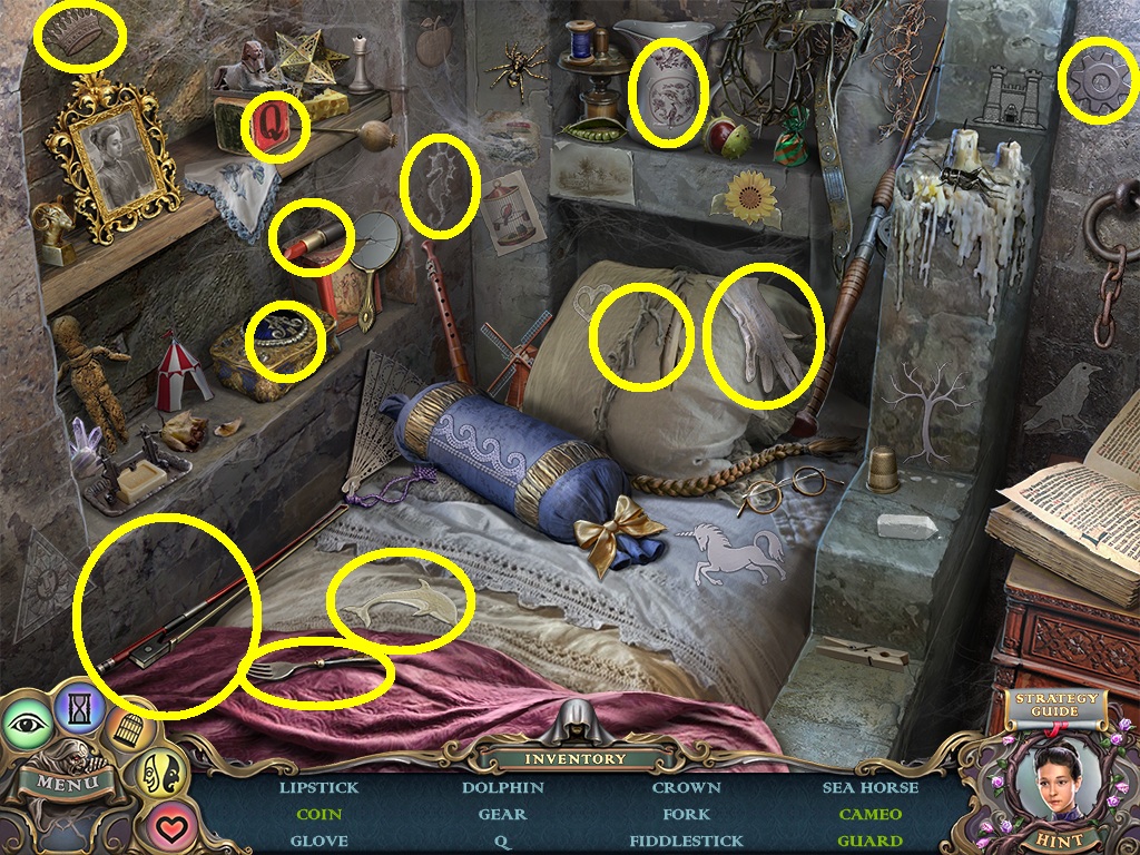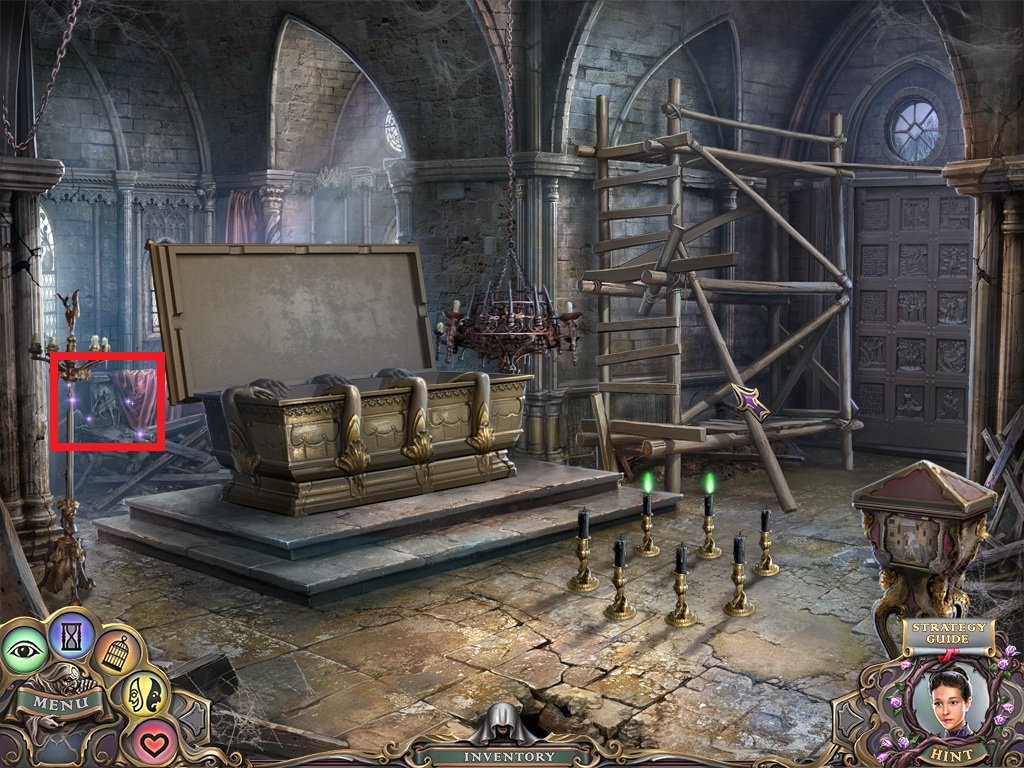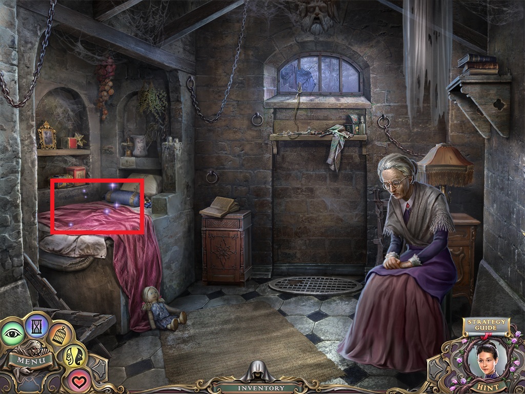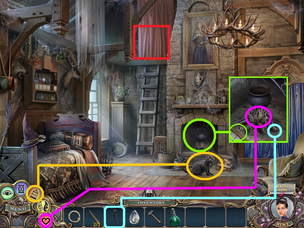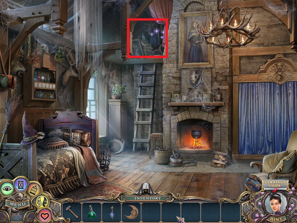 - Click the curtains in the loft to trigger a hidden objects area (red square).