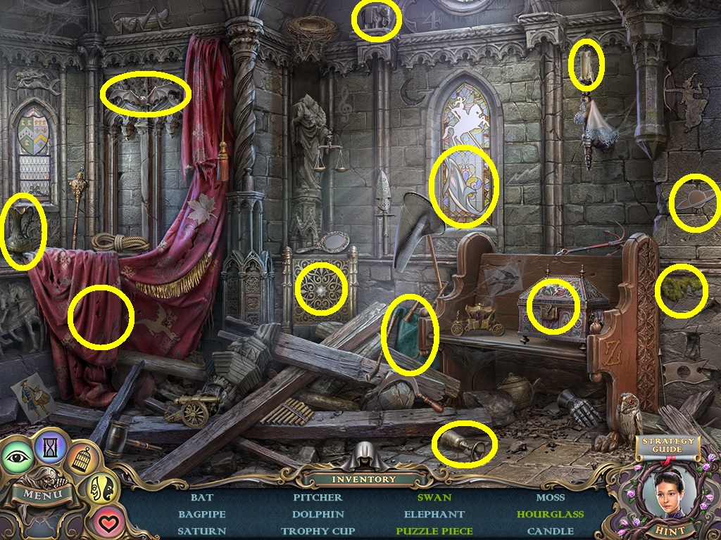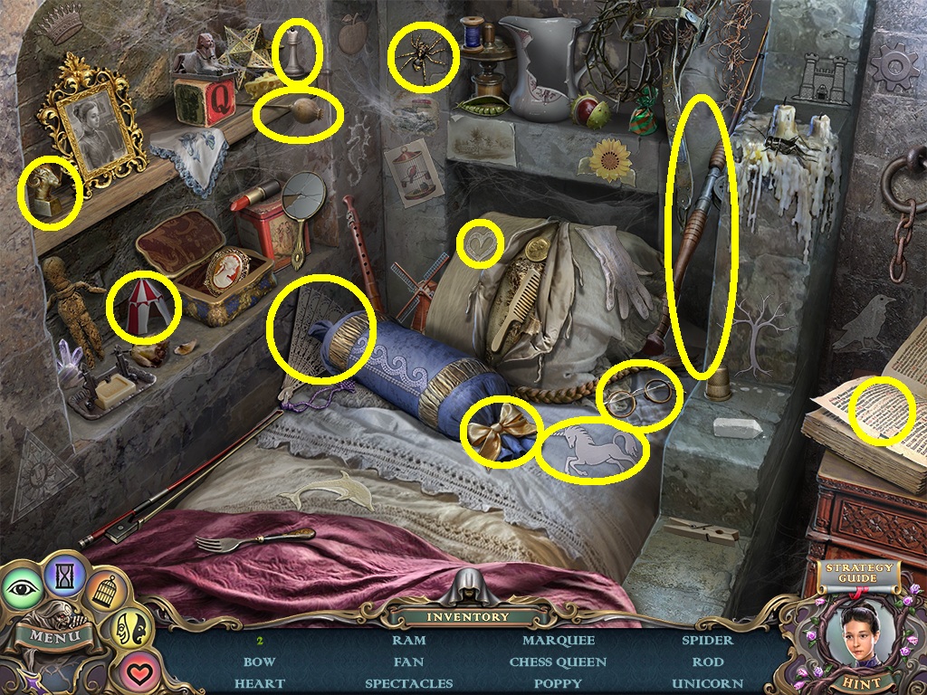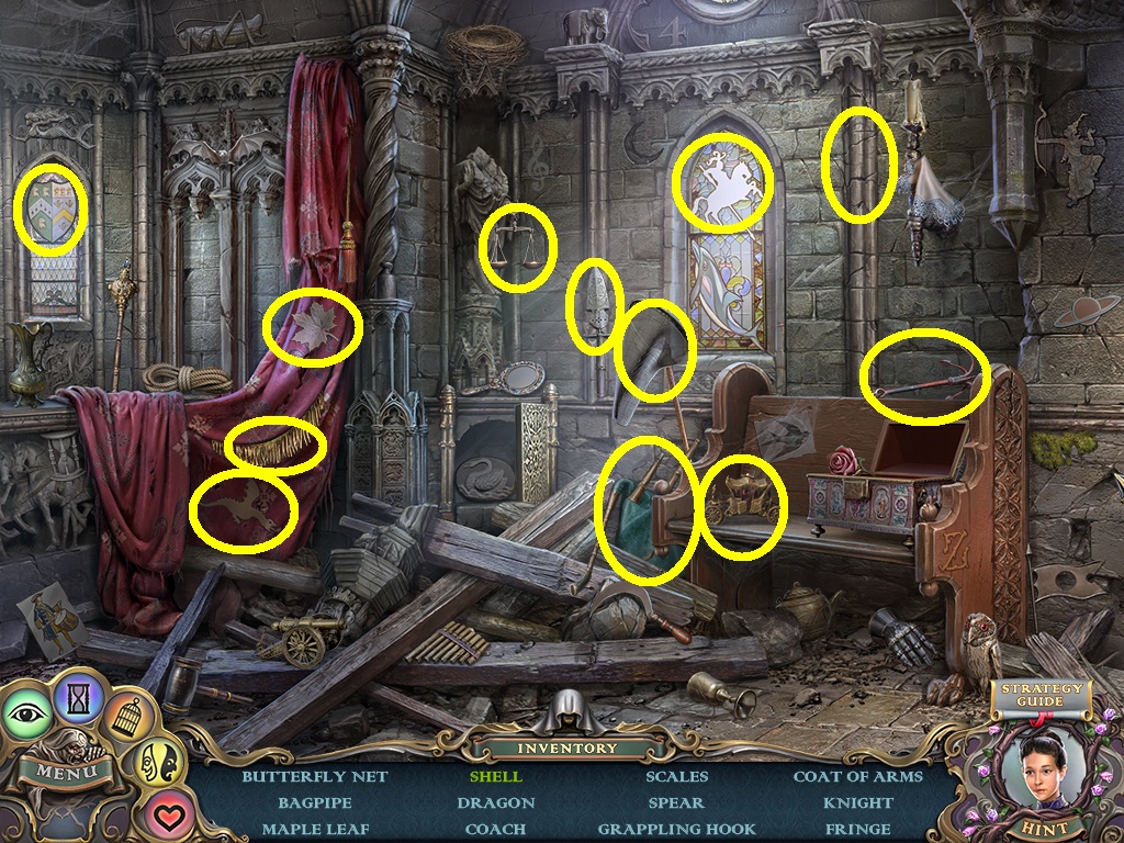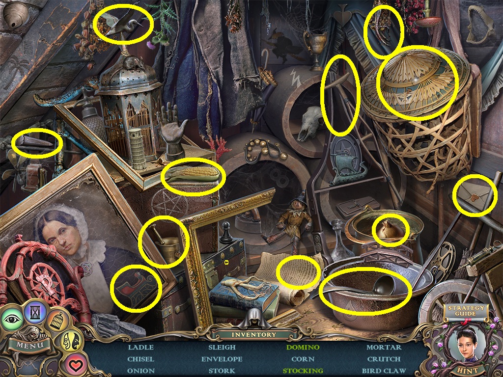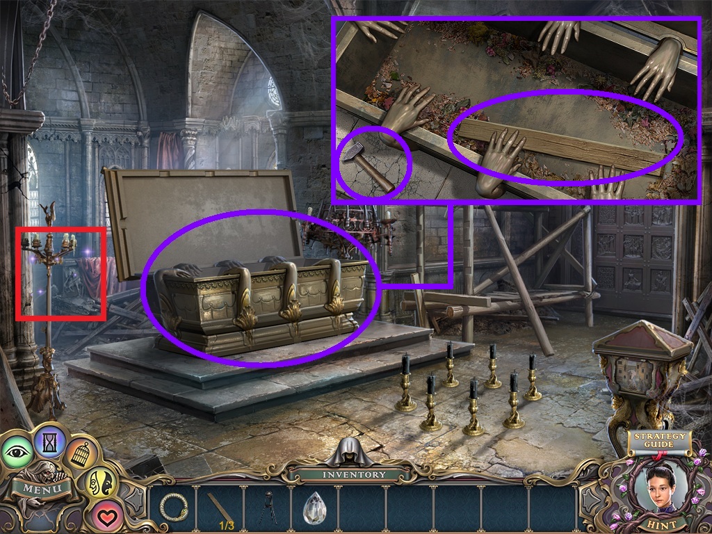 - Click the curtains in the loft to trigger a hidden objects area (red square).