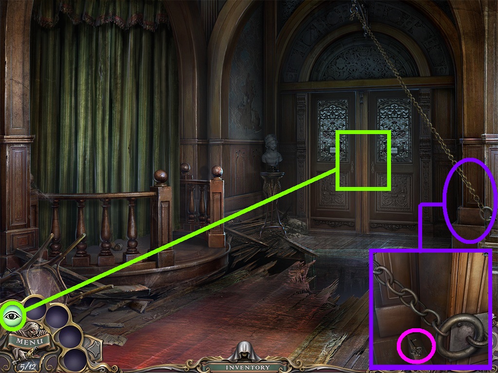 - Click the reveal power (green circle); use it on the door (green square).