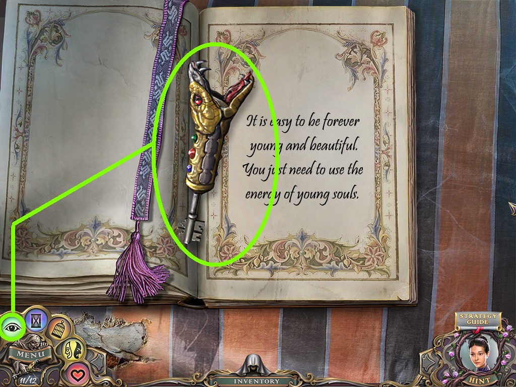 - Pick the book symbol (yellow square) from the inventory; place it into the book.