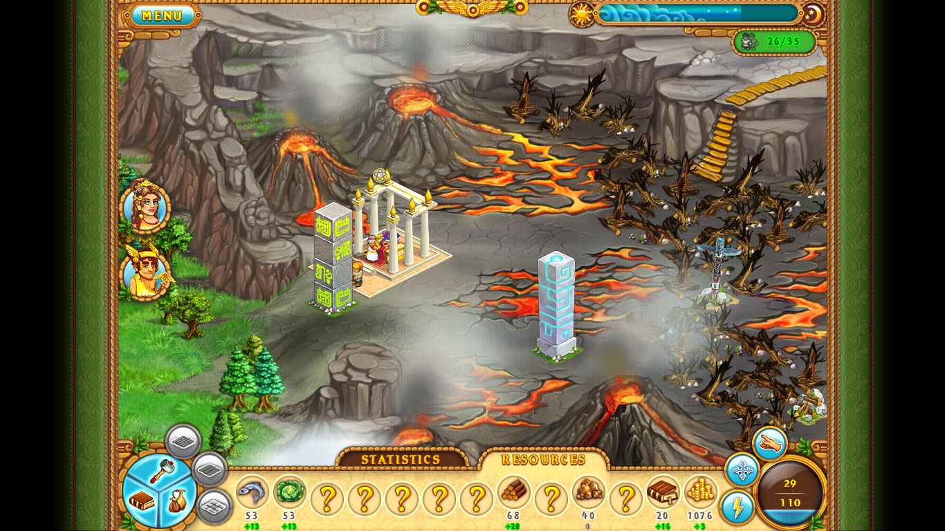 - Build the road to the Magistrates Hall to the steps in the lava. You might need to move some buildings to make room for path to the hall. Use Hand of God to get wood if you wish. Use the Hand of God in the fog and you will probably discover a lot of wood available.