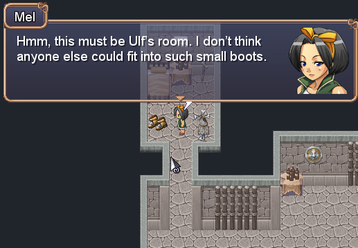 Next let’s go to the brother’s room… he’s kind of a pig. And what’s this? Muddy boots? Large muddy boots… I wonder… is this enough evidence to convince the investigator that Ulf is innocent? Surely it is. With evidence in tow, you head back to the investigator’s office. You present him the evidence in a clear and professional manner. He believes you! He is sure Ulf couldn’t have killed his father.
