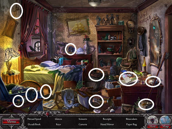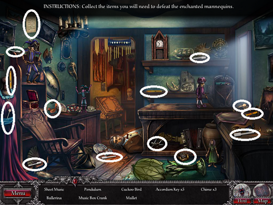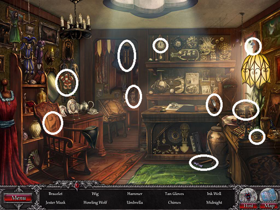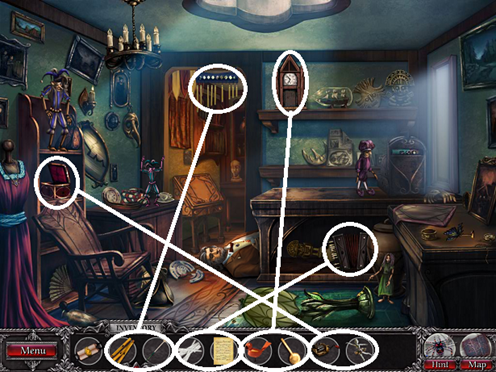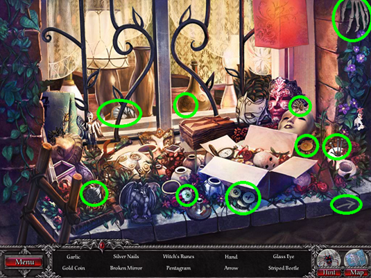 · Locate the hidden objects as shown. You will receive another gold coin.