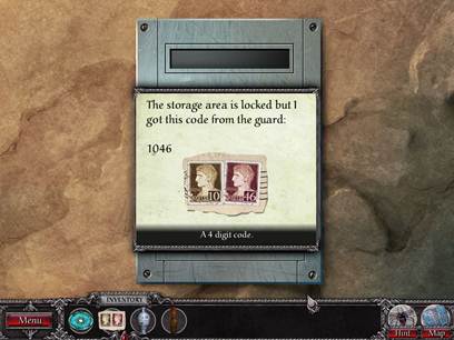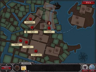 · Your Menu button will be on the lower left corner of your screen. A Hint button and a map will appear on the lower right corner. Your inventory will appear in between these items in the bottom center of the screen.