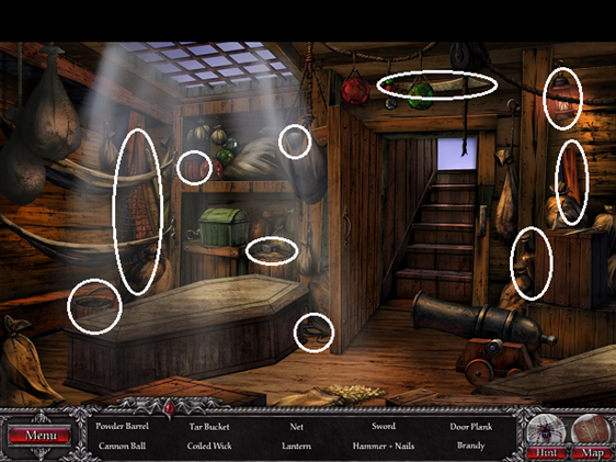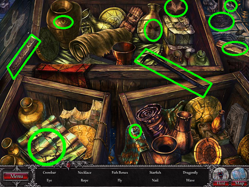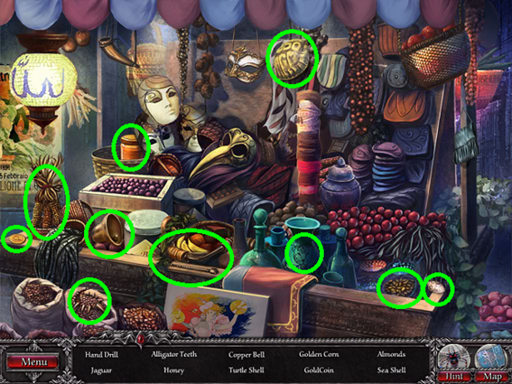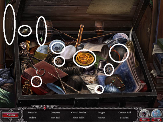 · Locate the hidden objects as shown. You will receive a gold coin and a scrap of a map paper.