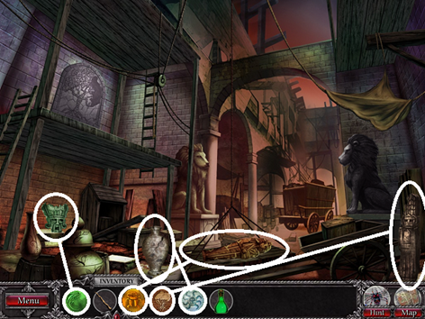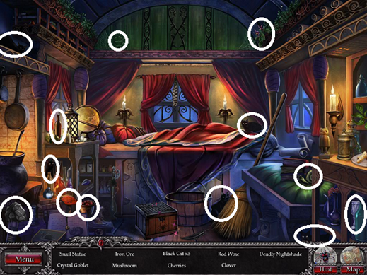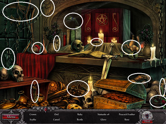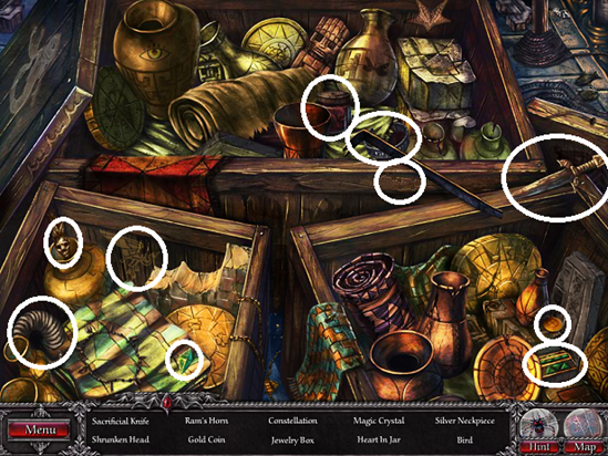 · Locate the hidden objects as shown. You will receive a Large Ruby and a Metal Chalice.