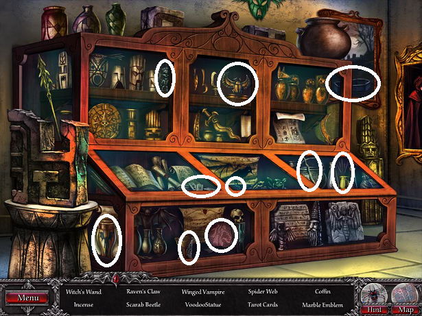 The Blood and Ruby Walkthrough has a complete step-by-step strategy guide, with screenshots throughout the game, including hidden object areas and puzzle solutions.