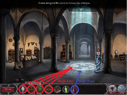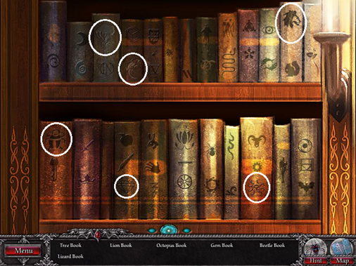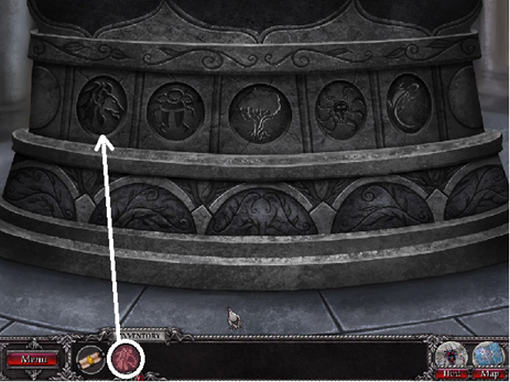 · Match the correct Emblem to the correct book as shown. You will receive a Book about the Fountain. Page through the Book. To exit the book, click in your Inventory box.