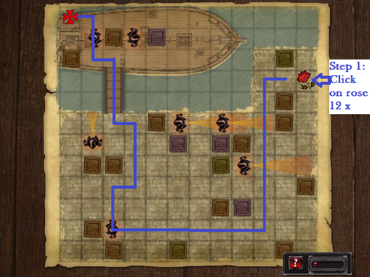 · Drag the Map Piece (scrap of paper) to the torn up mask on the desk.
