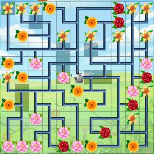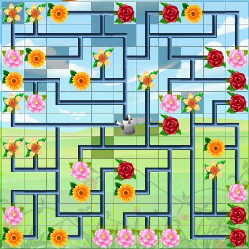 The objective of the game is to channel the water to make all the flowers bloom. The trick is water must flow THROUGH EACH TILE.