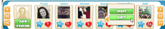 Along the bottom of the game window is all of your neighbors. Clicking on each neighbor will give you an option to send a gift or visit their city.