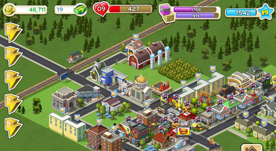 Or at least, some businesses! You need business for your city to prosper. You must build and stock (with goods) businesses before they can make money. You can also turn a business into a franchise by building one in a neighbor’s city. Once you start a franchise, you can build the franchise headquarters building and collect additional coins; the more stores you have opened, the more coins you get!