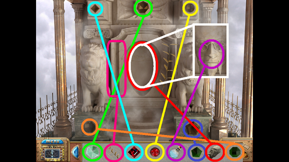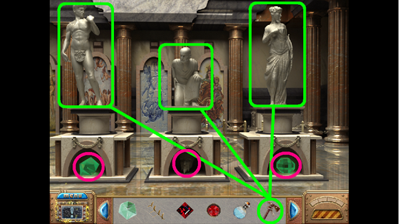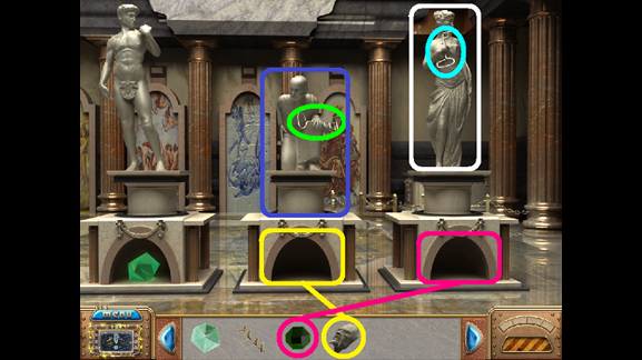 28. Place the Emerald in the compartment under the right statue (fuchsia).