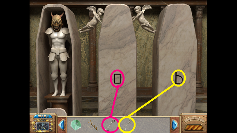 31. Open the center and right Sarcophaguses using the Keys as shown.