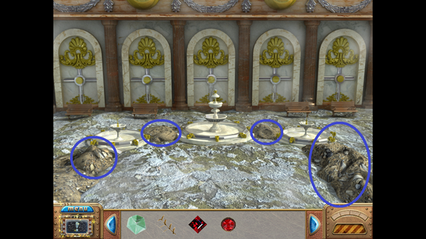 49. You are now at the Fountains. Click on any one of the dirt piles (blue).