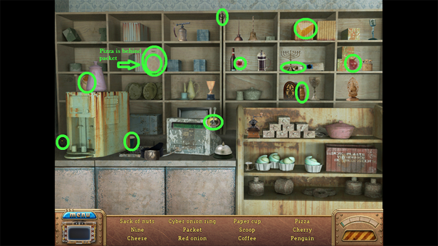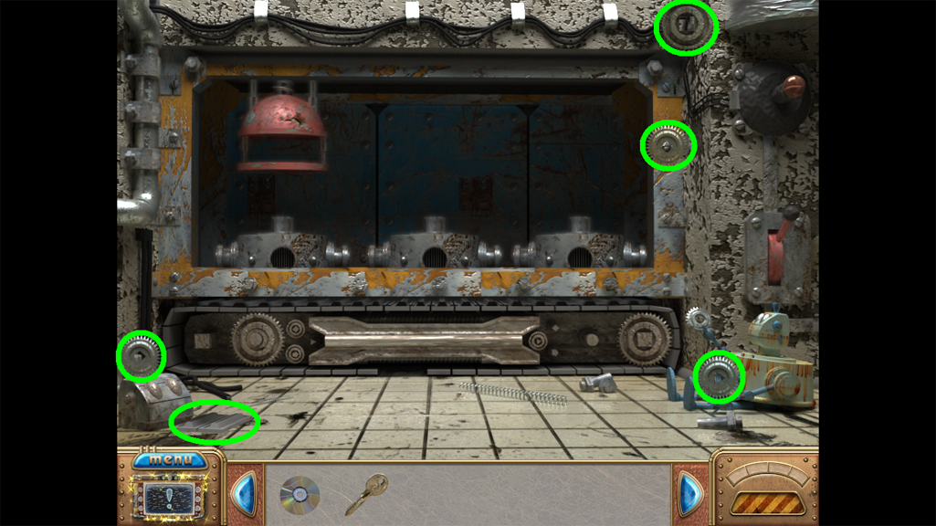 38. Click on the sparkles for a Hidden Object Scene. The five Robo-Heads will go into your Inventory.