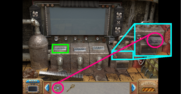 3. Look at the close-up of the door lock. When you see the gears, use the Key to unlock the door.