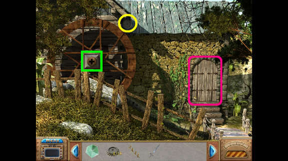 112. Place the Mill Key in the cross-shaped Keyhole (as shown).