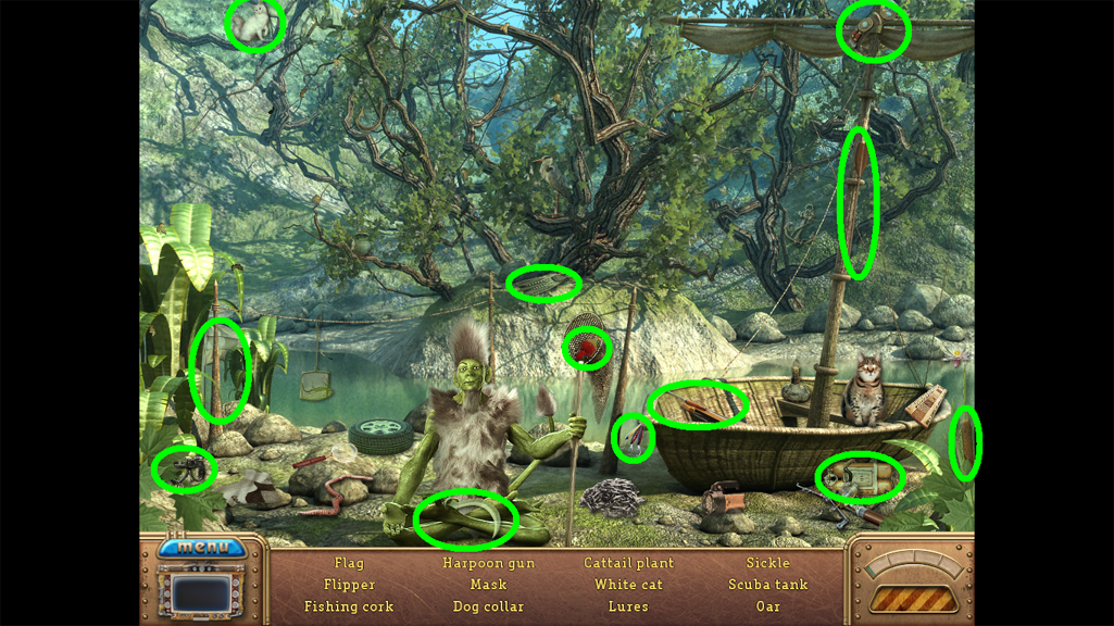 107. You will now enter a Hidden Objects scene. Locate the items and you will obtain the Oar for your Inventory.