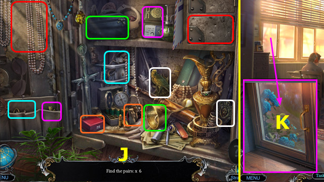 - Place FISH EMBLEM; take DOOR HANDLE and HOOK (H).