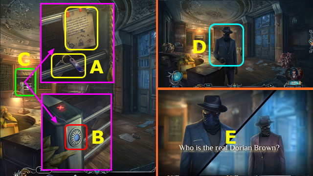 - Take POLICEMAN FIGURE and 1/5 MAYOR'S PHOTO (E).