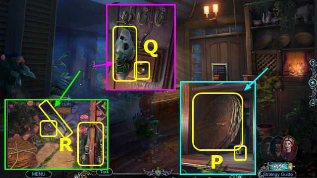 - Use SCISSORS; earn OXYGEN MASK; take 1/2 KEY CHAIN; place and select BUTTON (Q).