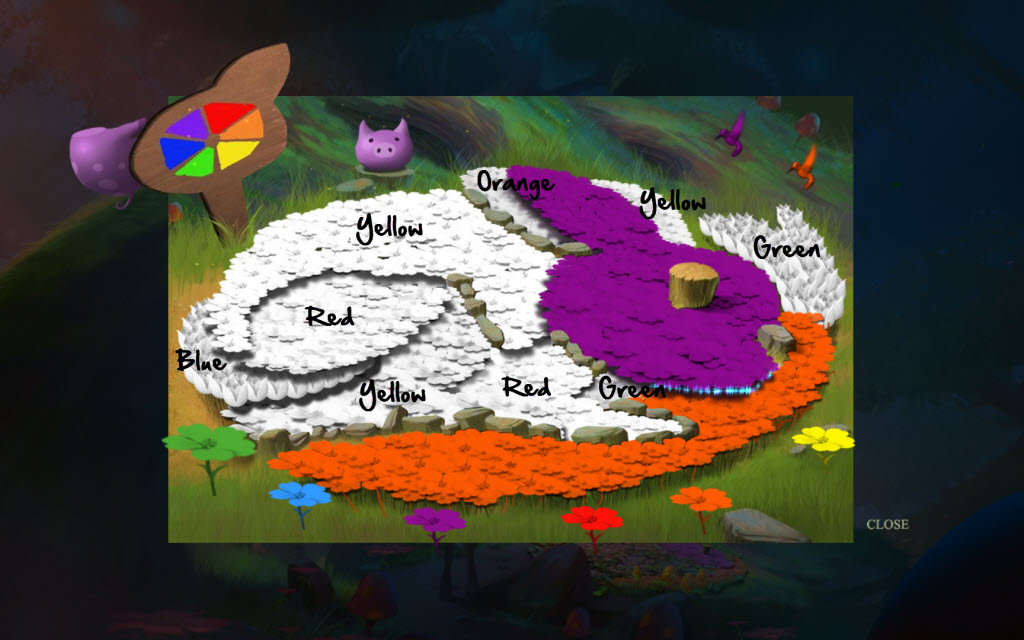 - now paint each area by clicking a colored flower and the clicking the area you want to color