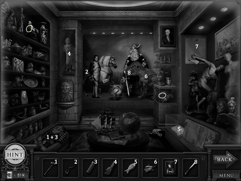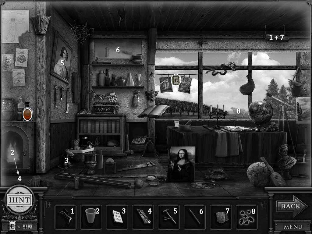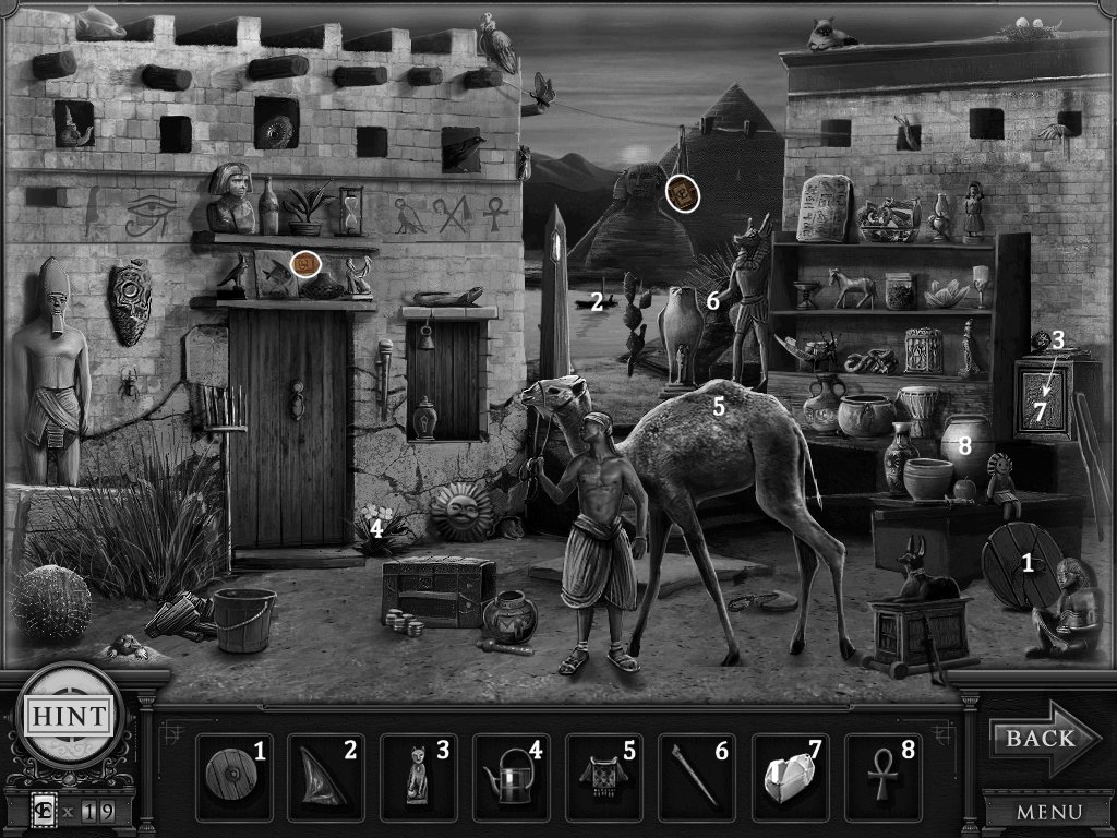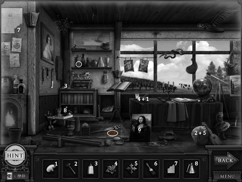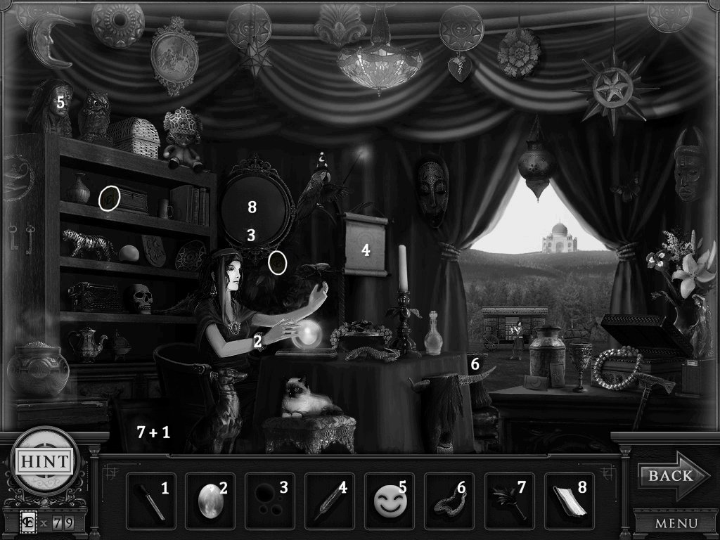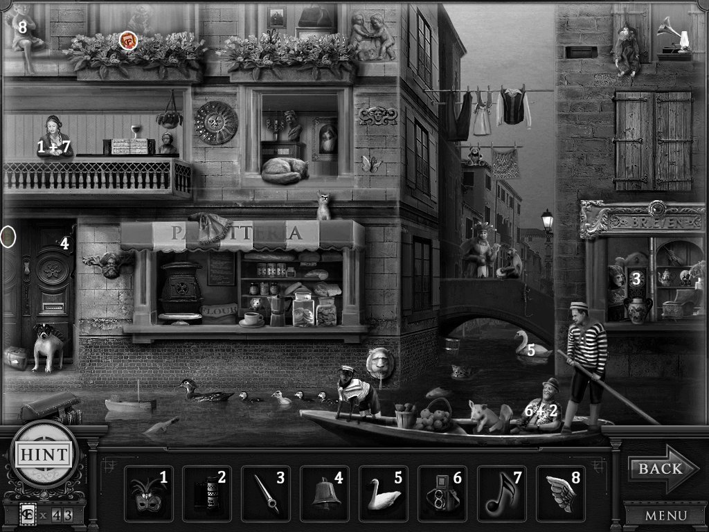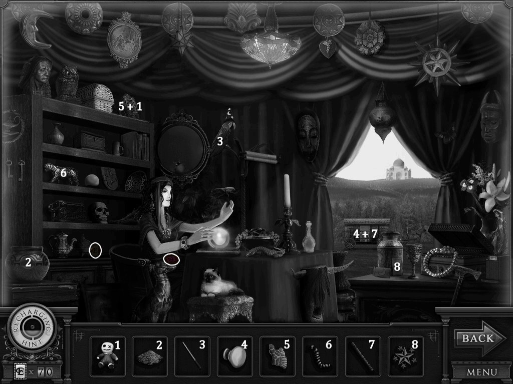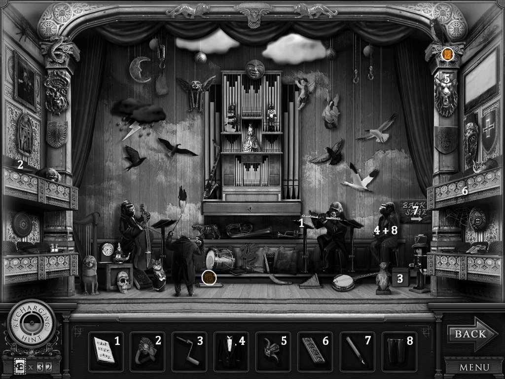 Hidden Objects: The objects aren’t actually hidden in this game. The objective is to match the object in the bar at the bottom to an object in the scene. Example: Spider + Web.